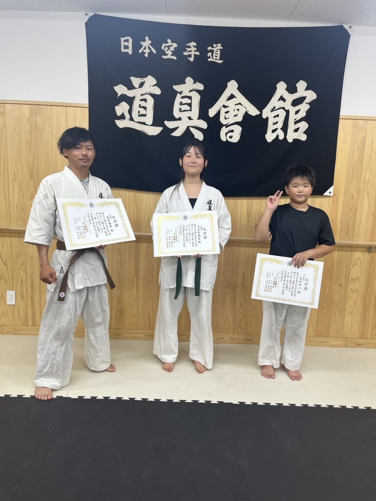 今回の審査は、皆さんが日頃の練習の成果を出せた良い機会でしたね。みんな無事昇級できました。さらに次の目標に向かって頑張っていきましょう。